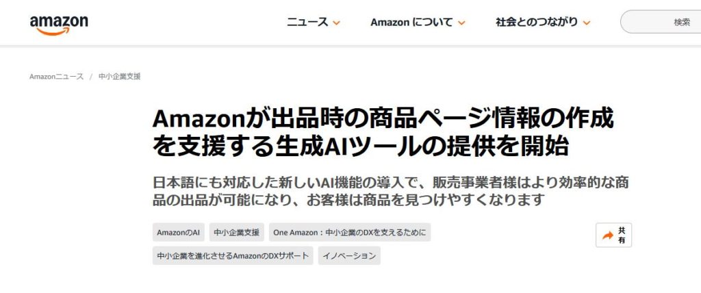 出典:Amazonが出品時の商品ページ情報の作成を支援する生成AIツールの提供を開始